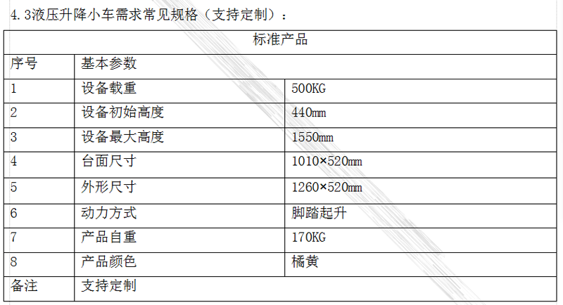 1、產(chǎn)品名稱:腳踏液壓升降小車